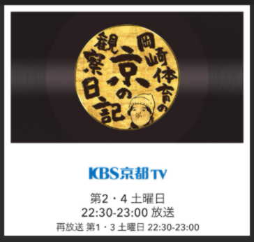 本日(9/27)放送の、KBS京都「岡﨑体育の京の観察日記」は、円町界隈を岡﨑体育さんがぶらりされます。